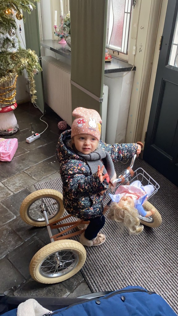 Vanochtend om 9.30u had ik een afspraak bij de mondhygiëniste. Nog even vlak voor kerst mijn tanden lekker laten polijsten! (Ik ben iets te hard aan het genieten van de Meilandjes vrees ik…) Natuurlijk was dat een race tegen de klok. Het is twee minuutjes lopen naar de parkeergarage waar ons autootje altijd staat, helaas stond de brug open die de route naar de garage blokkeert. Eenmaal bij de mondhygiëniste, die letterlijk met de hoorn in haar handen stond om me te bellen waar ik toch bleef, plofte ik in de stoel waarna ze een heel vragenvuur opende. Of ik ergens last van heb, hoe het met me gaat, of ik me goed voel, hoe het qua gezondheid met me gaat, enz. In het begin dacht ik nog, goh wat een vriendelijke juffrouw die even echt wil weten hoe het met me is, maar al gauw voelde het gek, ik zit hier toch bij de tandarts, waarom wil ze dat allemaal weten dan?! Ahaaa, COVID-19 protocol! Ineens ging het belletje rinkelen. Goeiemorgen, welkom op aarde in 2020… waar je bij de tandarts dus moet vertellen hoe het qua gezondheid met je gaat voor ze op 0 meter afstand in je mond haar werk kan doen. De mondhygiëniste ging vervolgens braaf aan de slag, maar gemak dient de mens dus tandplak wordt niet meer met het blote oog verwijderd maar door eerst een roze goedje op de tanden te smeren, wat achterblijft op het tandplak. Dat de rest van je mond, gehemelte en lippen ook de rest van de dag roze kleurt is bijzaak, de letterlijke reactie van de mondhygiëniste was notabene: ‘ach, je draagt toch de meeste tijd een mondkapje tegenwoordig, niemand die het ziet!’ Nee lekker dan. Vervolgens (en meteen de reden waarom ik het beroep mondhygiëniste verafschuw) komt dat moment dat je ondervraagd wordt hoe vaak je je tanden poetst en hoe. Welk antwoord je ook geeft, het biedt altijd aanleiding voor de mondhygiëniste om je vervolgens te onderwerpen aan een tandenpoets-instructie. Compleet met ‘ik geef je even een spiegeltje, dan kun je meekijken’. Ik weet niet maar ik krijg daar standaard de kriebels van, hoe goedbedoeld ook. Een kwartier nadat ik binnenkwam kon dan eindelijk overgegaan worden tot het doel van mijn komst; tandplak weg en polijsten maar! Superbedankt en ja ik ga ermee aan de slag, tot over een half jaar!! Eenmaal thuis is dochterlief net gebadderd en aangekleed, we lunchen, ruimen het huis op en maken ons klaar voor een paar dagen logeren in Den Bosch. We duiken een paar dagen onder in het logeerverblijf bij mijn ouders. In een poging toch een soort van kerst te vieren in kleine setting. Oorspronkelijk bedacht om vanuit dat verblijf er lekker op uit te gaan, gelukkig is er een grote polder naast de deur, verder zullen we niet komen vrees ik… Lilly-Sofie heeft vandaag weer een relaxdagje, zit lekker in haar bubbel en verplaatst zich van iPad naar tv en terug. We laten haar vandaag maar lekker haar rust pakken. Eenmaal in de auto vallen de ogen al snel dicht, om pas na 1,5 uur weer open te gaan, niet geheel uit vrije wil maar omdat mama haar uit de auto tilt. Binnen bij oma komt ze langzaam weer tot leven. We kruipen samen achter de piano en ze loopt door het huis met haar boodschappenwagentje en een hondje achter haar aan trekkend. We sluiten de avond af met een drankje op de bank en de meilandjes op tv, #mijnietbellen! Die mooie uitspraak vond ik voor vandaag toch heel toepasselijk!